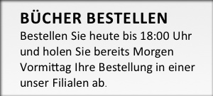 Der Slogan lautet: “Wir sind schneller als das Internet”. Bestellen Sie bei uns Ihre Bücher bis 18.00 Uhr und am nächsten Vormittag können Sie diese im Ladengeschäft abholen.